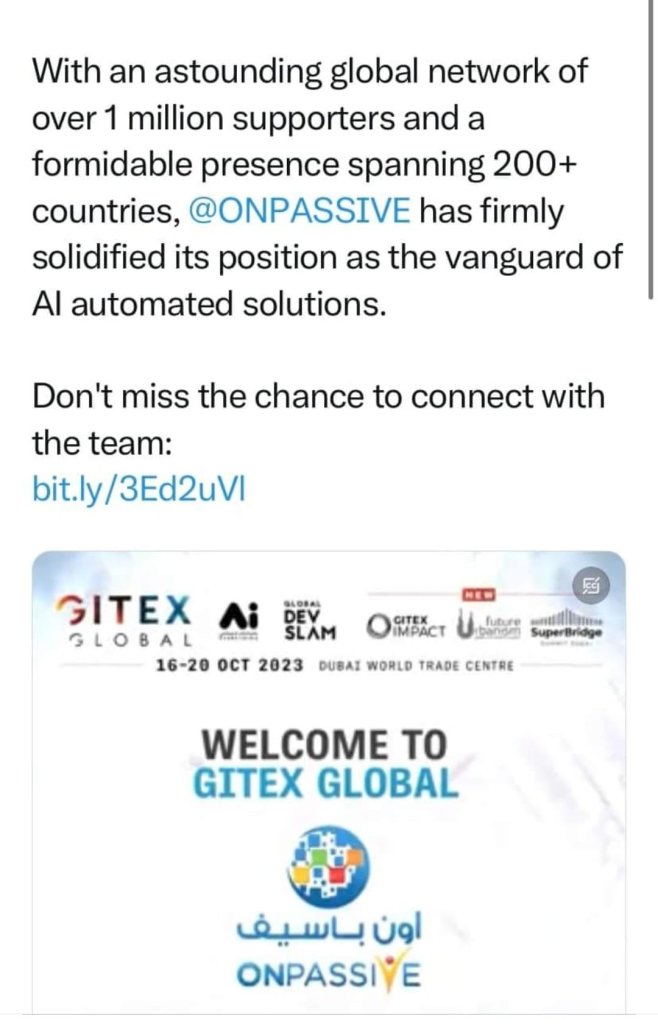 #ONPASSIVE #GITEXGLOBAL #Dubai #Tecnology #event #ifyoudreamityoucandoit