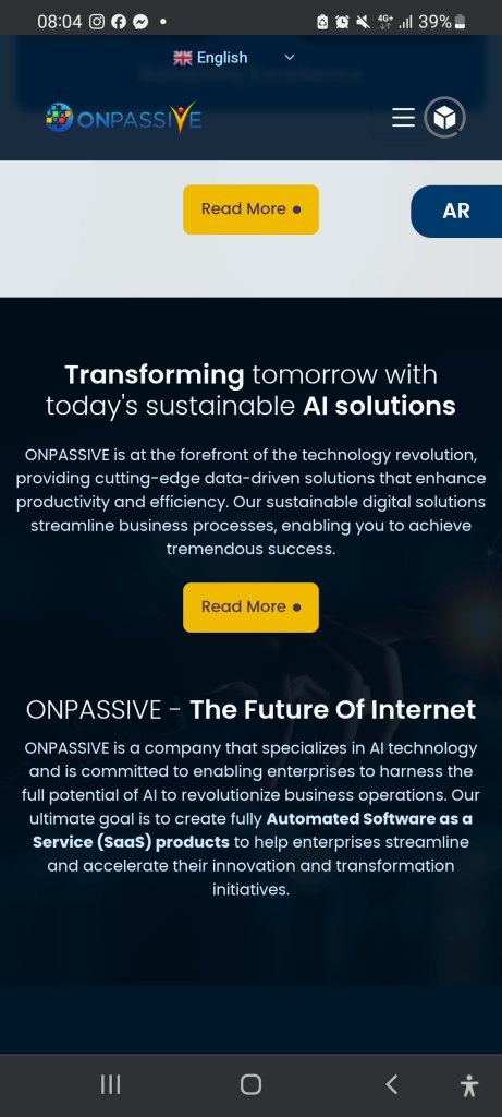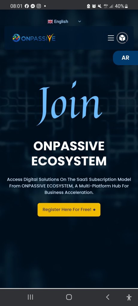 ONPASSIVE was created to create balance in today’s world, which is going through a very dark time! The #ONPASSIVE brand is a brand that allows users and members to enjoy products and services, with a Quality/Price that is much higher than anything else on the market! Using AI, the ONPASSIVE Ecosystem offers speed and value for your business, the ONPASSIVE Ecosystem Using AI will be fully automated so that your business reaches the maximum number of potential customers! With a global network of more than 3 million customers and members, with offices in 5 countries USA, INDIA DUBAI, SINGPAURA AND EGYPT, ONPASSIVE is already a UNICORN Company and this is only in the initial phase of the first 3 free products and the first product paid out ! But much more will come!