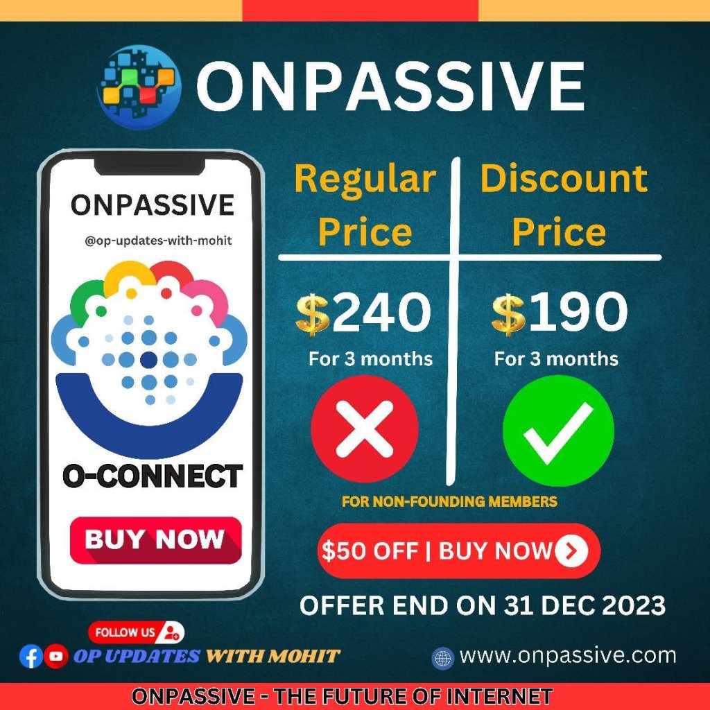 Once again our Wonderful and Magnificent CEO and Leader surprises us, even with all the benefits that we will soon have, our CEO always demonstrates the Respect and Consideration he has for all of us, Founding Members, ONPASSIVE Customers and offers us a” gift CHRISTMAS”, for all those who were unable to subscribe to O-Connect, our CEO Mr. ASH MUFAREH offers us a unique and historic price for the first subscription to O-CONNECT!