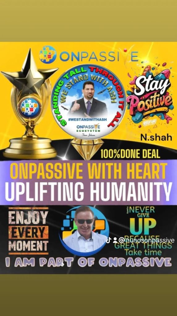 No one has ever offered us an opportunity like Mr. Ash Mufareh offered us with ONPASSIVE, and also someone who does something for people and for Humanity will always be a target to be shot down by people or Corrupt entities with vested interests, because they take away Power and Control from a Limited number, to the General Population, and this will mean that in the case of Mr. Ash and ONPASSIVE they will be constantly Attacked from many sides, but here it is up to me, us and you to have the right mindset and follow ONPASSIVE to realize that this ONPASSIVE is a Marathon and not a Sprint, and that during this Marathon Obstacles will appear, but we will have to know how to avoid these obstacles and continue on Path, because only then will we be able to reach the Goal, but for that we have to Keep Faith and Trust because we are Led by a MAN, who never hid and always appeared to show his face in the moments ONPASSIVE’s Most Chaotic Moments…