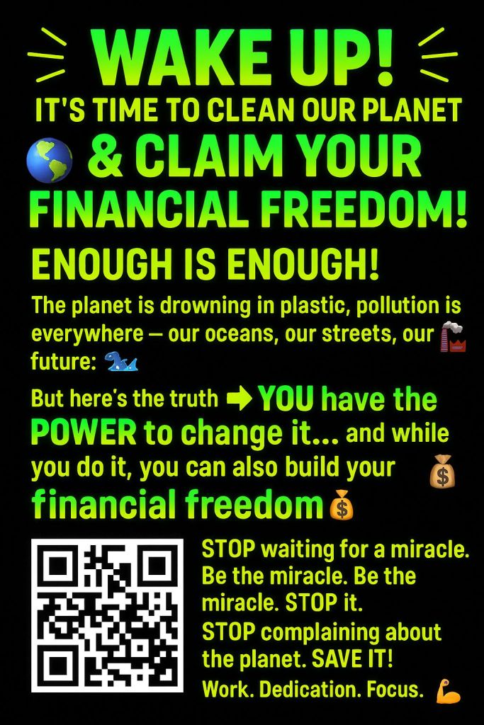 🎨 Visual Style: Futuristic, green/blue/neon, with 3D icons of plastic, oil, money, freedom