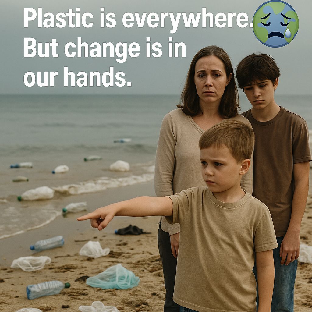 🎨 Visual Style: Futuristic, green/blue/neon, with 3D icons of plastic, oil, money, freedom