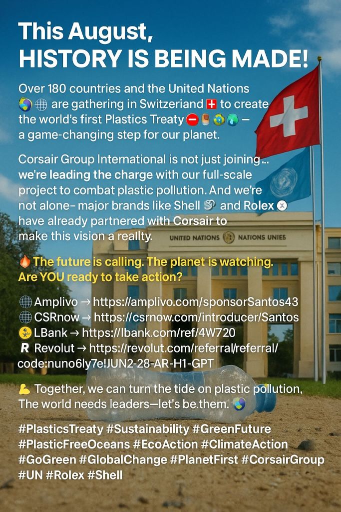\#PlasticsTreaty #Sustainability #GreenFuture #PlasticFreeOceans #EcoAction #ClimateAction #GoGreen #GlobalChange #PlanetFirst #CorsairGroup #UN #Rolex #Shell #TogetherForThePlanet