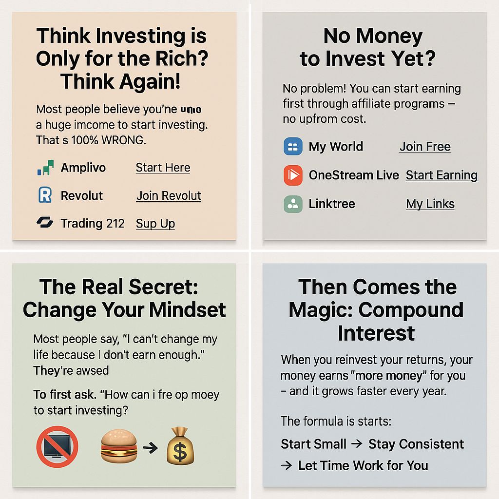 #InvestSmart #MindsetMatters #FinancialFreedom #PassiveIncome #CompoundInterest #StartWithOneEuro #MoneyTips #SmallStepsBigResults #WealthBuilding #ConsistencyIsKey #MoneyMindset