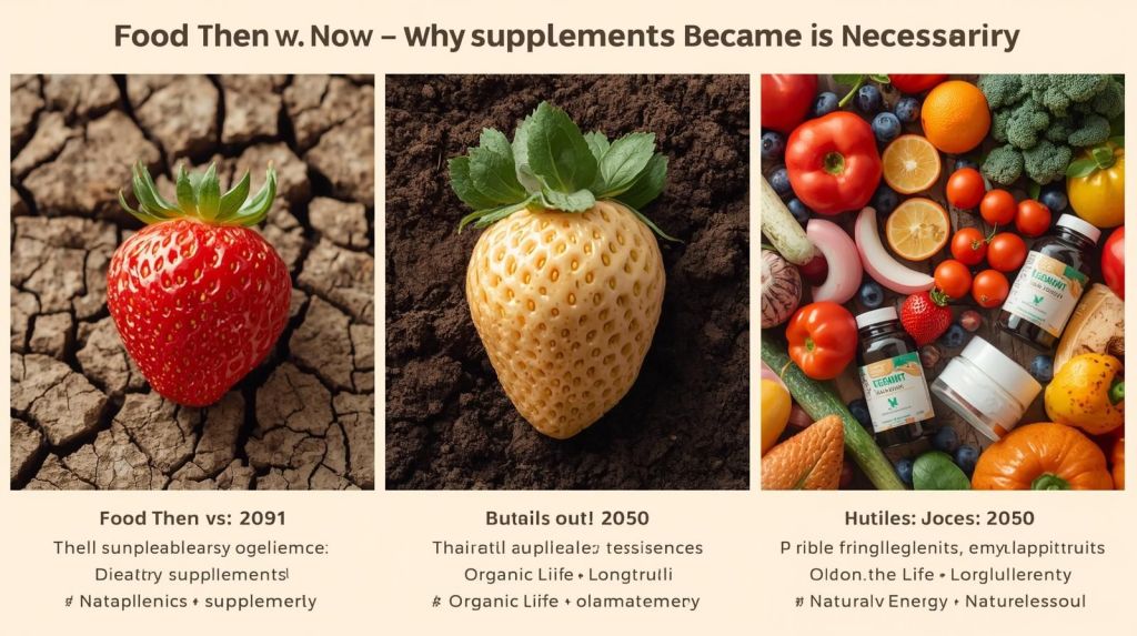That’s why many people now turn to supplements — not because our bodies changed, but because our food changed.