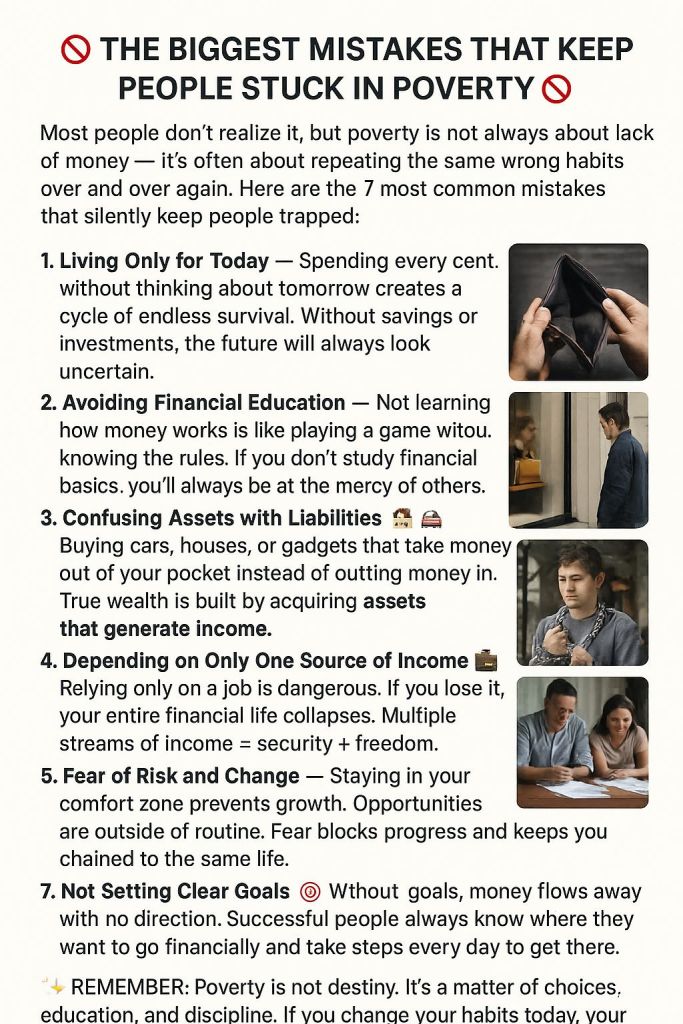 Most people don’t realize it, but poverty is not always about lack of money — it’s often about repeating the same wrong habits over and over again. Here are the 7 most common mistakes that silently keep people trapped: