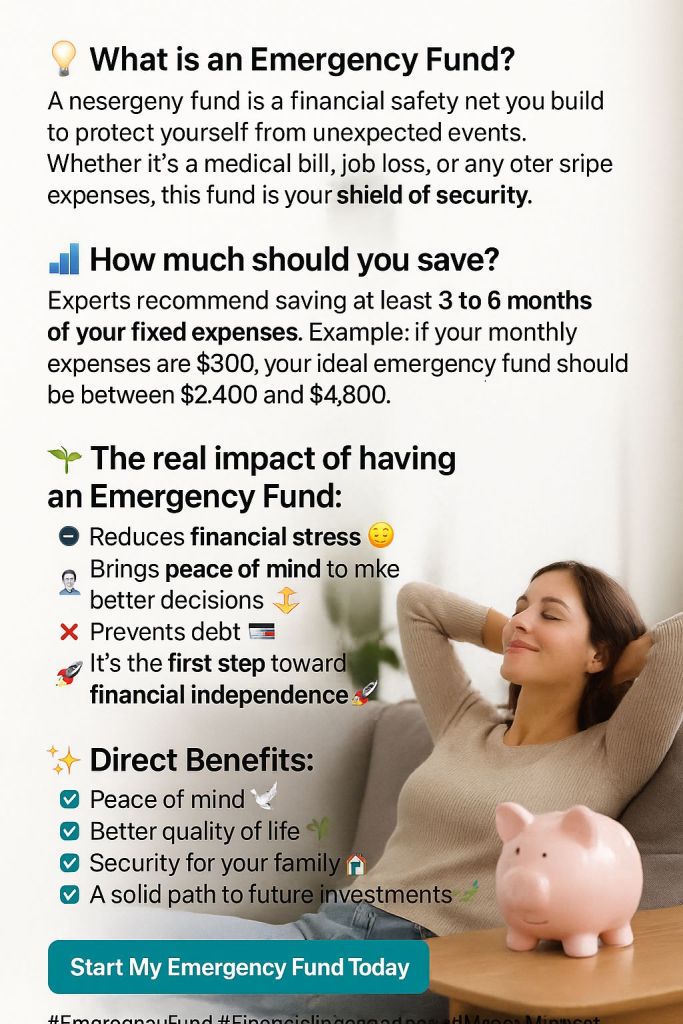 An emergency fund is a **financial safety net** you build to protect yourself from unexpected events. Whether it’s a medical bill, job loss, or any other surprise expense, this fund is your **shield of security**.