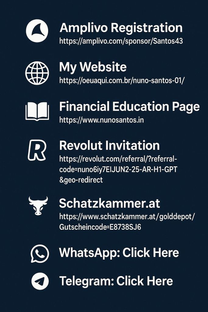 #FinancialFreedom 💰 #WealthMindset 💎 #DigitalFreedom 🌐 #InvestSmart 📈 #StartWith1Euro 💶 #Revolut #eToro #LBank #Amplivo #PassiveIncome 💵 #FinancialEducation 🎓 #NunoSantos #AbundanceMindset 🌈 #WealthCreation #MoneyWisdom 🧠 #MindsetShift 🚀 #GoldInvesting 🏆 #CryptoTrading 💹 #OnlineBusiness 💻